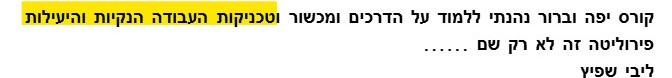 הרגשתי שיש פה איזה שהוא רצון, כמו הלוגו, כמו הסלוגן של הקורס - רוצים באמת שנצליח, לא בכדי יש את ה”תצליחו” בכל סיום של מייל.