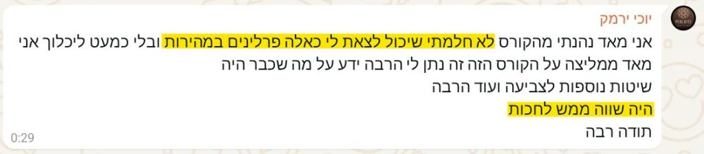 ובנוסף, בהצטרפותך היום לקורסי הפרלינים, את זוכה להצטרף ללא עלות נוספת לקהילה המקצועית שלנו, לקבל ליווי מקצועי מהצוות עד פורים,