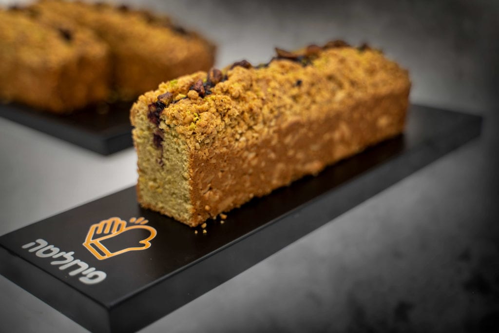 מפזרים קרמבל פיסטוק על פני העוגה.